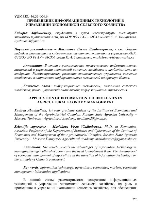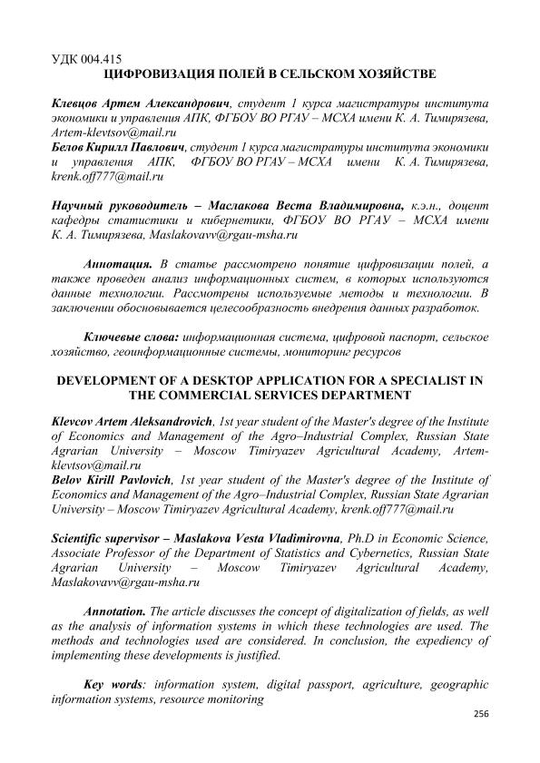 Russian State Agrarian University - Moscow Timiryazev Agricultural Academy.