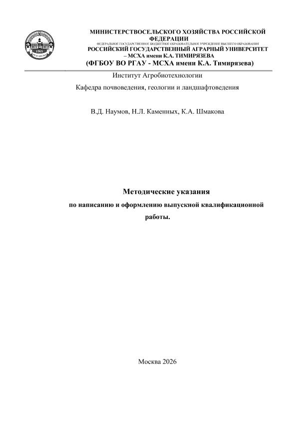 Методические указания по написанию и оформлению выпускной квалификационной работы: методические указания
