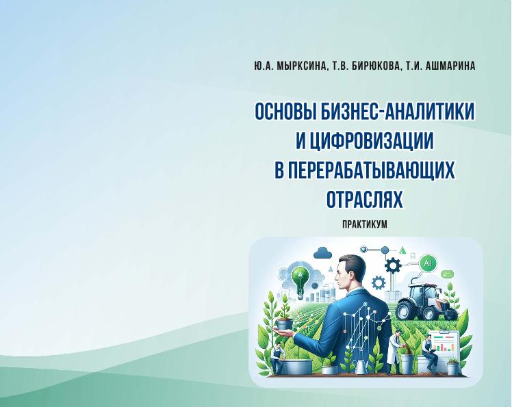 Мырксина, Ю.А. Основы бизнес-аналитики и цифровизации в перерабатывающих отраслях: практикум / Российский государственный аграрный университет - МСХА имени К. А. Тимирязева (Москва). — Электрон. текстовые дан. — Москва, 2025. — 100 с. — Коллекция: Учебная и учебно-методическая литература. — Свободный доступ из сети Интернет (чтение, печать, копирование). — Режим доступа : http://elib.timacad.ru/dl/full/s05122025Mirksina_prakt.pdf. - Загл. с титул. экрана. - Электрон. версия печ. публикации. — <URL:http://elib.timacad.ru/dl/full/s05122025Mirksina_prakt.pdf>.