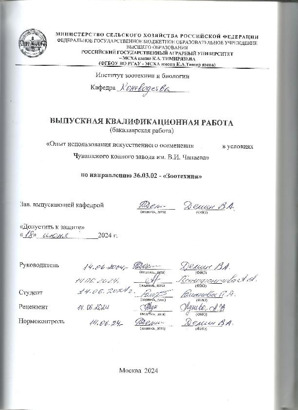 Романова, П. А. Опыт использования искусственного осеменения в условиях Чувашского конного завода им. В. И. Чапаева: защищена ..2024 / П. А. Романова; рук. работы: В. А. Демин, А. А. Ксенофонтова; Российский государственный аграрный университет - МСХА имени К. А. Тимирязева [и др.]. — Электрон. текстовые дан. — Москва, 2024. — 85 с. — Коллекция: Выпускные квалификационные работы. — Доступ по паролю из сети Интернет (чтение, печать, копирование). — Режим доступа : http://elib.timacad.ru/dl/local/vkr-k12206.pdf. - Загл. с титул. экрана. - Электрон. версия печ. публикации. — <URL:http://elib.timacad.ru/dl/local/vkr-k12206.pdf>.