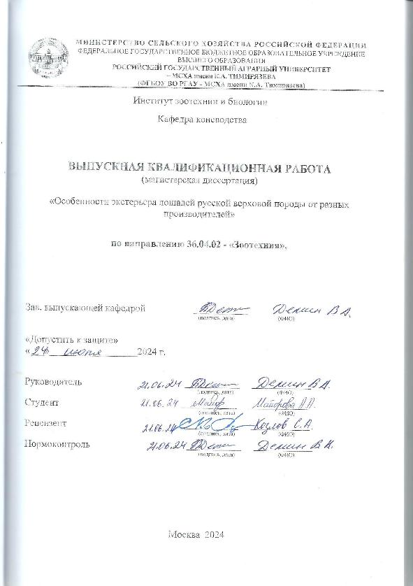 Майорова, А. А. Особенности экстерьера лошадей русской верховой породы от разных производителей: защищена ..2024 / А. А. Майорова; рук. работы В. А. Демин; Российский государственный аграрный университет - МСХА имени К. А. Тимирязева [и др.]. — Электрон. текстовые дан. — Москва, 2024. — 63 с. — Коллекция: Выпускные квалификационные работы. — Доступ по паролю из сети Интернет (чтение, печать, копирование). — Режим доступа : http://elib.timacad.ru/dl/local/vkr-k12210.pdf. - Загл. с титул. экрана. - Электрон. версия печ. публикации. — <URL:http://elib.timacad.ru/dl/local/vkr-k12210.pdf>.