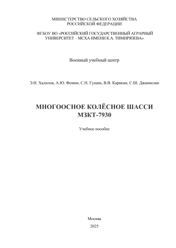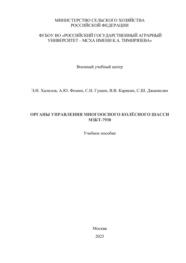 ОРГАНЫ УПРАВЛЕНИЯ МНОГООСНОГО КОЛЁСНОГО ШАССИ МЗКТ-7930: Учебное пособие / Российский государственный аграрный университет - МСХА имени К. А. Тимирязева (Москва). — Электрон. текстовые дан. — Москва, 2025. — 52 с. — Коллекция: Учебная и учебно-методическая литература. — Доступ по паролю из сети Интернет (чтение). — Режим доступа : http://elib.timacad.ru/dl/full/s02102025Halilov_MZKT.pdf. - Загл. с титул. экрана. - Электрон. версия печ. публикации. — <URL:http://elib.timacad.ru/dl/full/s02102025Halilov_MZKT.pdf>.