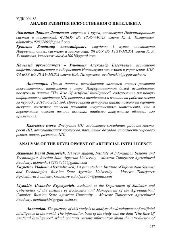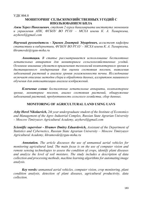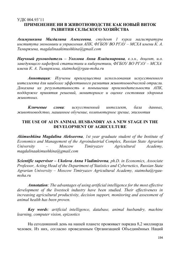 Джейранова, Элени Михайловна. ПРОБЛЕМЫ ВНЕДРЕНИЯ НАУЧНЫХ МЕТОДОВ ЗЕМЛЕДЕЛИЯ В ОБРАЗОВАТЕЛЬНЫЙ ПРОЦЕСС В РОССИИ XIX ВЕКА: ПРИЧИНЫ РАЗРЫВА МЕЖДУ ТЕОРИЕЙ И ПРАКТИКОЙ: РАЗДЕЛ 2. АКТУАЛЬНЫЕ ВОПРОСЫ ОТЕЧЕСТВЕННОЙ ИСТОРИИ / Э. М. Джейранова; науч. рук. А. Б. Грачев. — с.199-203. — Электрон. текстовые дан. // ЛАБИРИНТЫ ВРЕМЕНИ: ИСТОРИЯ, ИСТОЧНИКИ, ИСТОРИОГРАФИЯ. Сборник статей участников Всероссийской (национальной) научной конференции студентов и аспирантов. – 2025. – Коллекция: Конференции РГАУ - МСХА им. К. А. Тимирязева. — Свободный доступ из сети Интернет (чтение, печать, копирование). — Режим доступа : http://elib.timacad.ru/dl/full/LV-2-08.pdf. - Загл. с титул. экрана. — <URL:http://elib.timacad.ru/dl/full/LV-2-08.pdf>.
