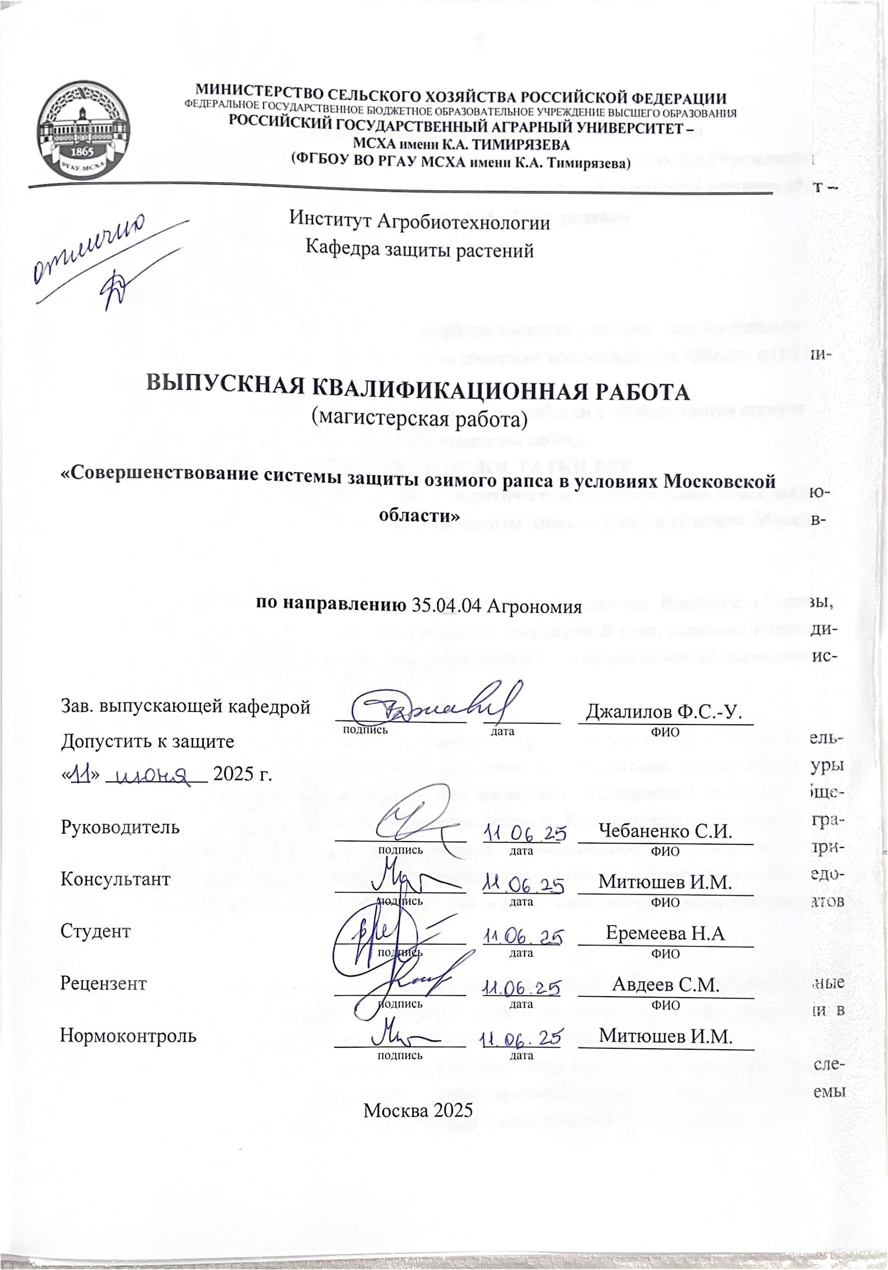 Еремеева, Н. А. Совершенствование системы защиты озимого рапса в условиях Московской области: защищена ..2025 / Н. А. Еремеева; рук. работы С. И. Чебаненко; Российский государственный аграрный университет - МСХА имени К. А. Тимирязева [и др.]. — Электрон. текстовые дан. — Москва, 2025. — 79 с. — Коллекция: Выпускные квалификационные работы. — Доступ по паролю из сети Интернет (чтение, печать, копирование). — Режим доступа : http://elib.timacad.ru/dl/local/vkr-k12046.pdf. - Загл. с титул. экрана. - Электрон. версия печ. публикации. — <URL:http://elib.timacad.ru/dl/local/vkr-k12046.pdf>.