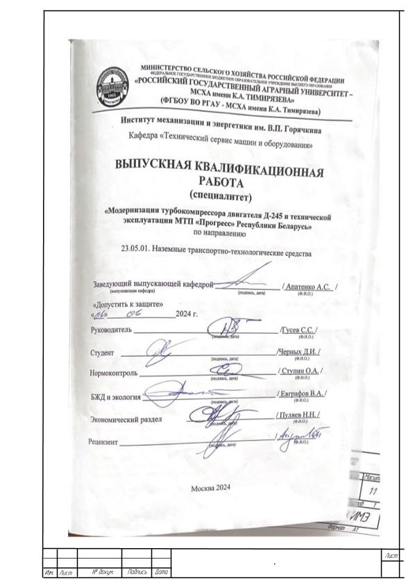 Черных, Дмитрий Игоревич. Модернизация турбокомпрессора двигателя Д-245 и технической эксплуатации МТП "Прогресс" Республики Беларусь: : защищена ..2024 / Д. И. Черных; рук. работы С. С. Гусев; Российский государственный аграрный университет - МСХА имени К. А. Тимирязева [и др.]. — Электрон. текстовые дан. — Москва, 2024. — 87 с. — Коллекция: Выпускные квалификационные работы. — Доступ по паролю из сети Интернет (чтение, печать, копирование). — Режим доступа : http://elib.timacad.ru/dl/local/vkr-k12902.pdf. - Загл. с титул. экрана. - Электрон. версия печ. публикации. — <URL:http://elib.timacad.ru/dl/local/vkr-k12902.pdf>.