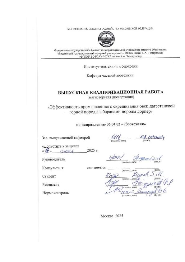 Юсупов, Зикрула Майрбекович. Эффективность промышленного скрещивания овец дагестанской горной породы с баранами породы дорпер: : защищена ..2025 / З. М. Юсупов; рук. работы Ю. А. Юлдашбаев; Российский государственный аграрный университет - МСХА имени К. А. Тимирязева [и др.]. — Электрон. текстовые дан. — Москва, 2025. — 88 с. — Коллекция: Выпускные квалификационные работы. — Доступ по паролю из сети Интернет (чтение, печать, копирование). — Режим доступа : http://elib.timacad.ru/dl/local/vkr-k12951.pdf. - Загл. с титул. экрана. - Электрон. версия печ. публикации. — <URL:http://elib.timacad.ru/dl/local/vkr-k12951.pdf>.